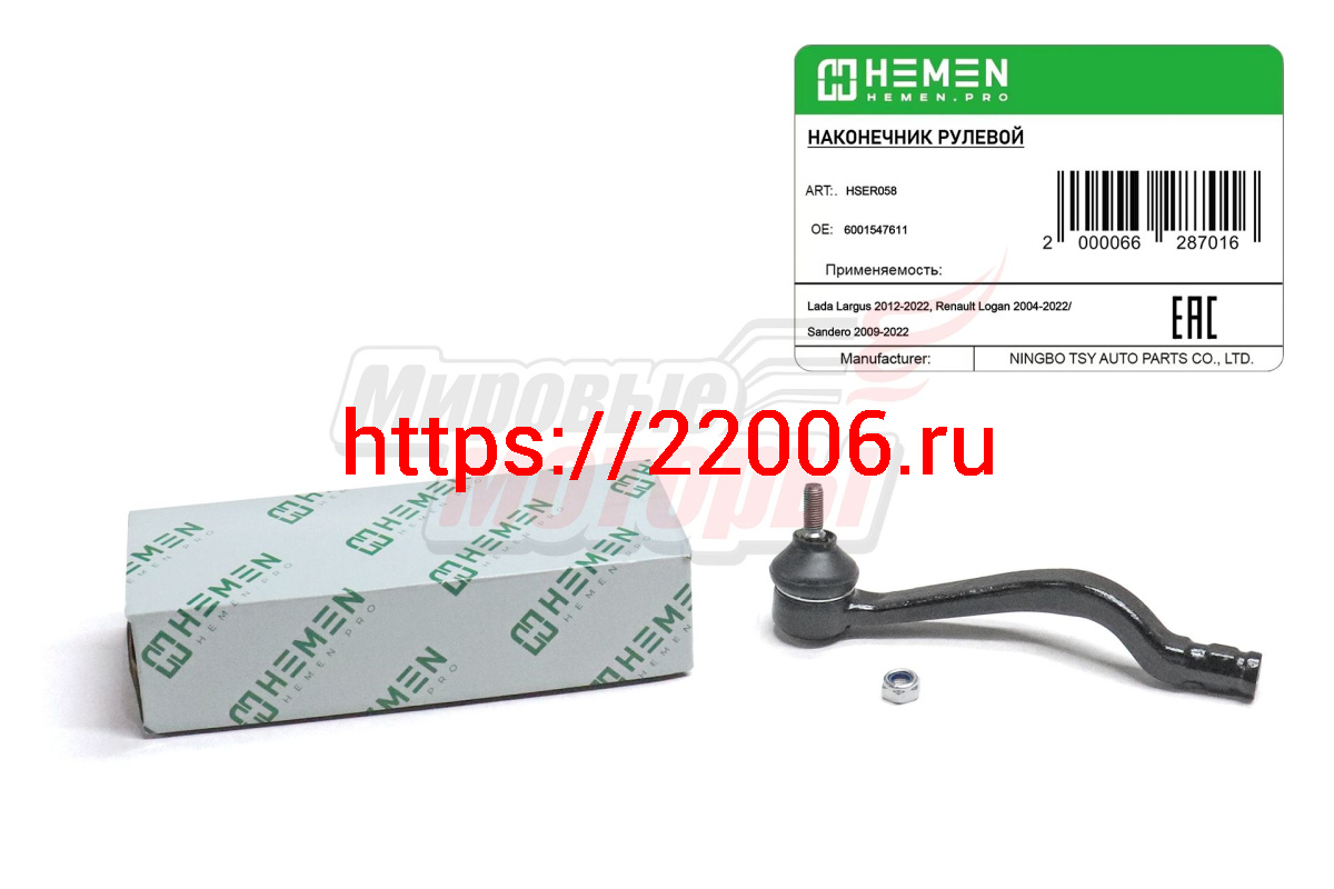 - Наконечник рулевой правый Lada Largus 12-, Renault Logan 04-, Sandero 09- (HSER058) в Серове недорого