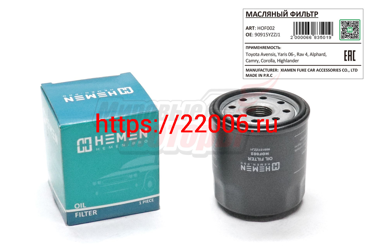 - Фильтр масляный Toyota Avensis, Yaris 06-, Rav 4, Alphard, Camry, Corolla, Highlander (HOF002) в Серове недорого