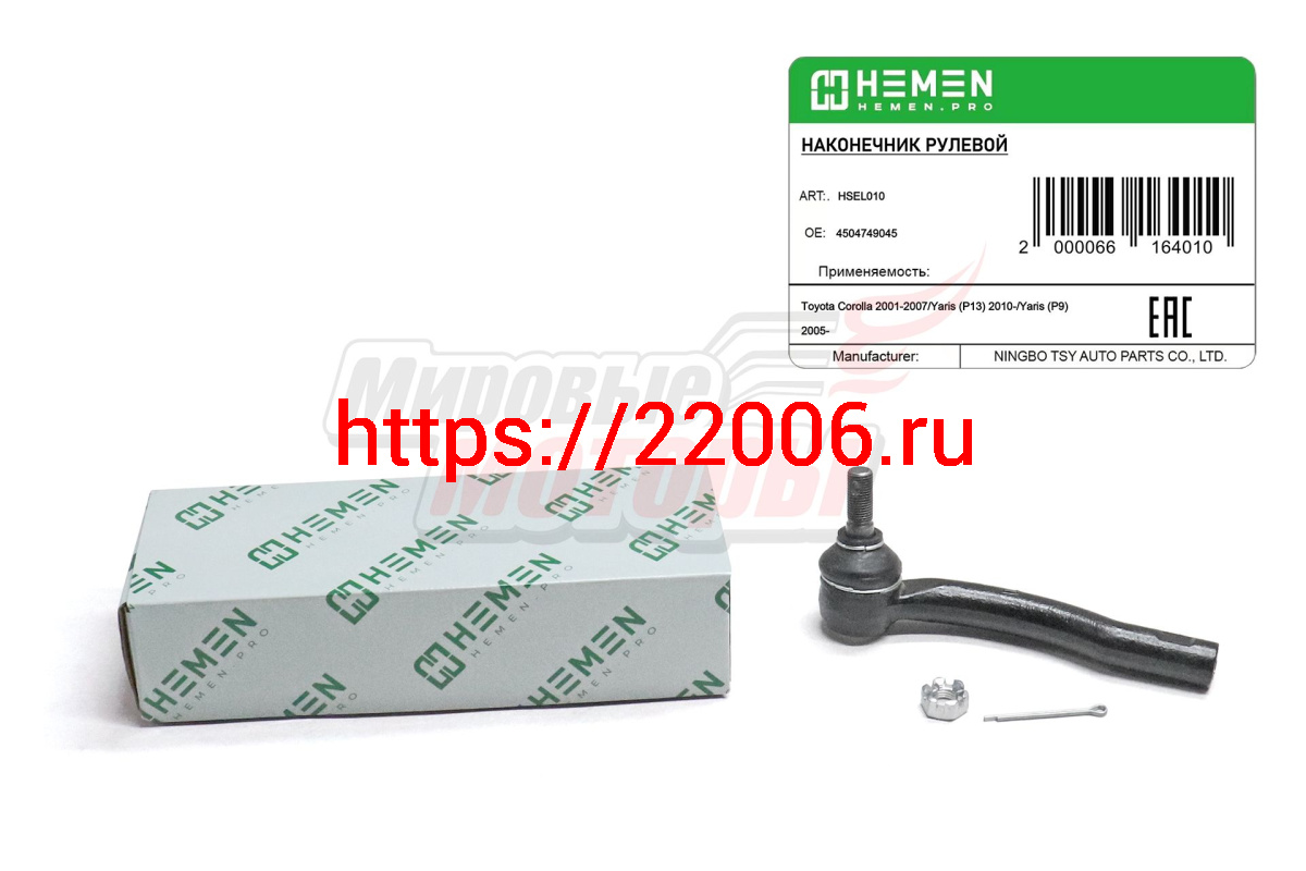 - Наконечник рулевой левый Toyota Corolla 02-, Yaris 05- (HSEL010) в Серове недорого