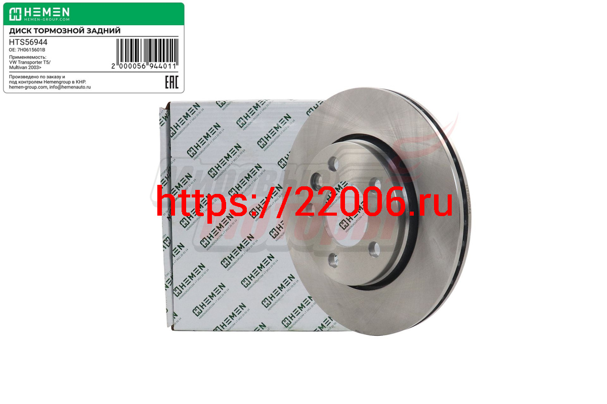 - Диск тормозной задний VW Transporter T5/Multivan 2003> D=294 мм (HTS56944) в Серове недорого