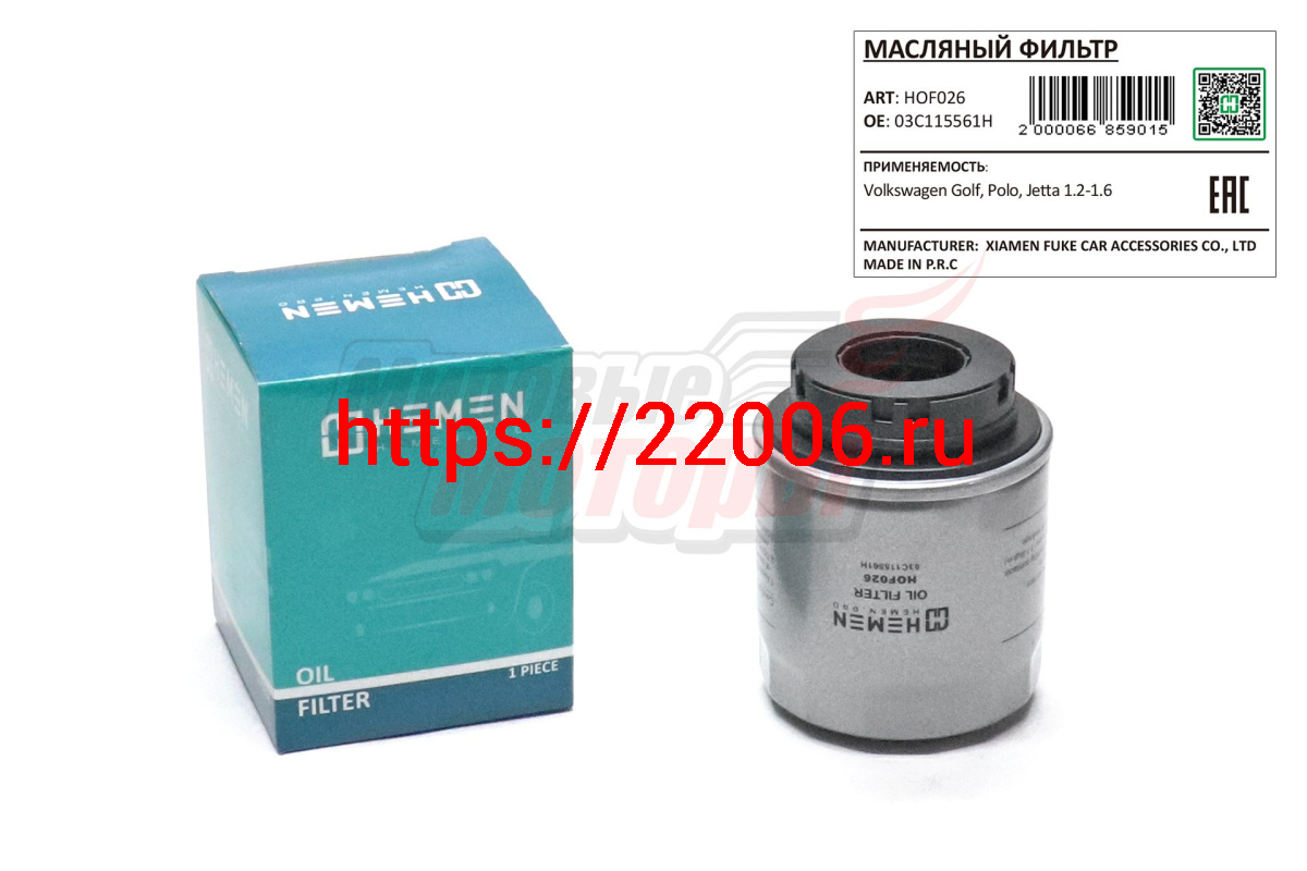 - Фильтр масляный Volkswagen Golf, Polo, Jetta 1.2-1.6 (HOF026) в Серове недорого