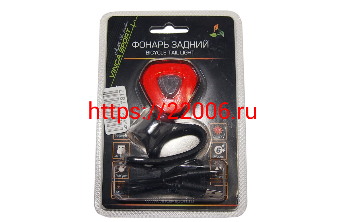 - Фонарь Вело задний, кабель USB для подзарядки в комплекте, инд.уп.VS в Серове недорого